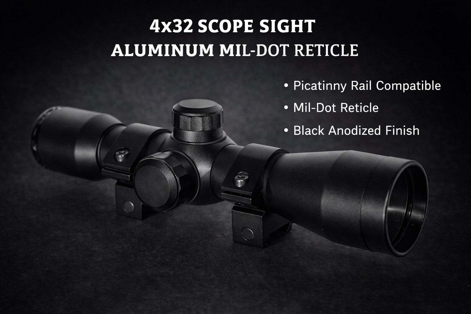 - The TRINITY 4X32 Compact Mil-Dot Rifle Scope w/ Rings offers superb light transmission thanks to its blue fused multi-coated lenses, which reduce internal reflections and also provide protection against scratches. The TRINITY 4x32 Compact Scope is made to take plenty of heavy recoils.