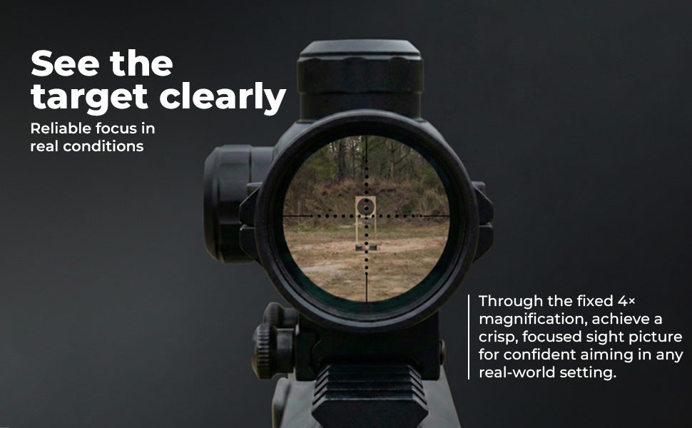 - 3 Inch eye relief provides safety from heavy recoil and enables fast target acquisition